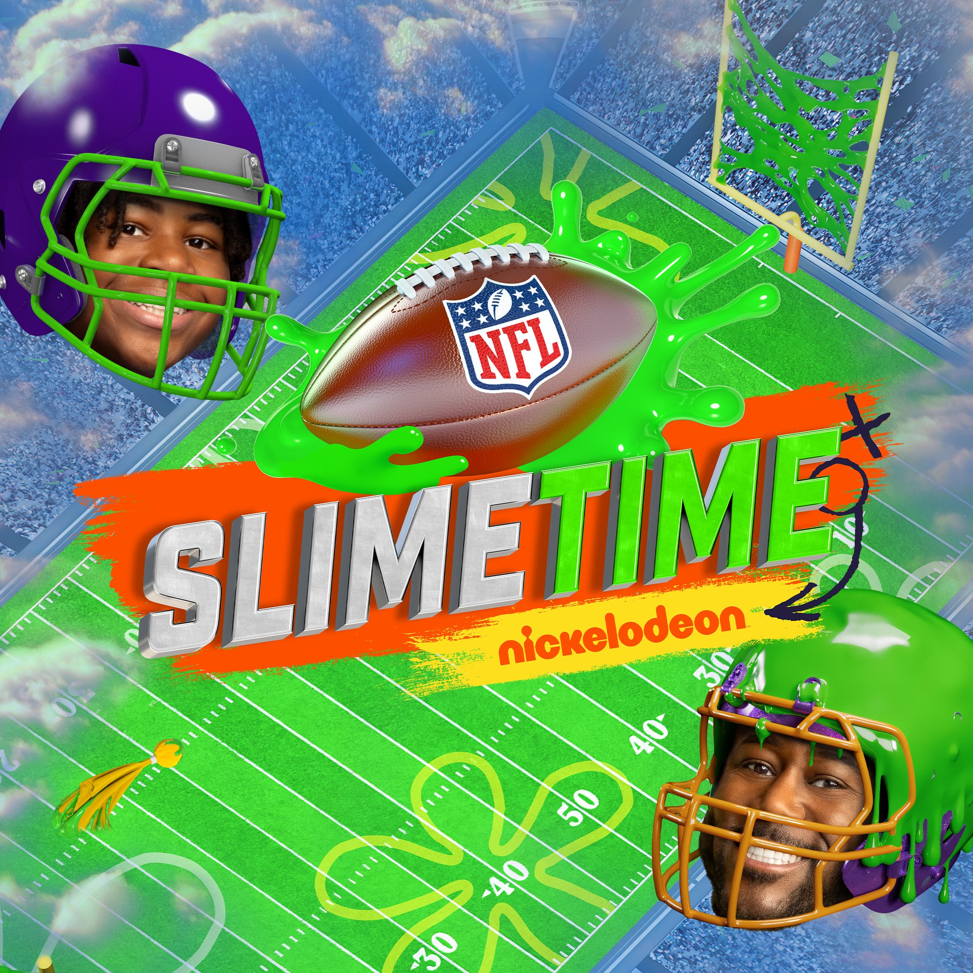 Nickelodeon’s NFL Slimetime keeps the game wild, weird, and wonderfully slimy. For Season 5, we brought that chaos to life in this commentary show’s key art. I designed a playful, high-energy composition that brings the Nickelodeon spirit to game day. The creative direction centered on blending NFL excitement with over-the-top, kid-friendly chaos — complete with flying slime, bold motion, and plenty of personality.