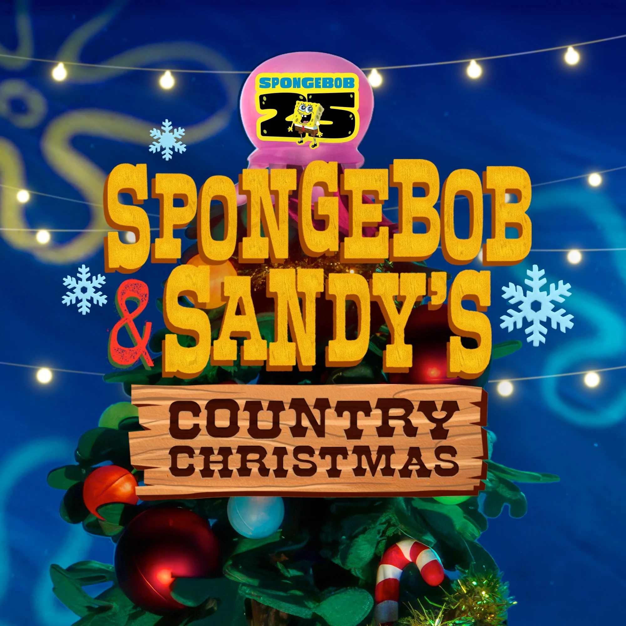 With limited assets to pull from, we relied on unit photography from the stop-motion shoot and a mix of stock elements to build out the composition. Our goal was to channel the handcrafted charm of the special itself, leaning into warm holiday textures, playful lighting, and cozy country details. The final key art captures the joy and goofiness of SpongeBob and Sandy’s Christmas spirit, wrapped up in a bright, celebratory scene that feels straight out of their underwater holiday.